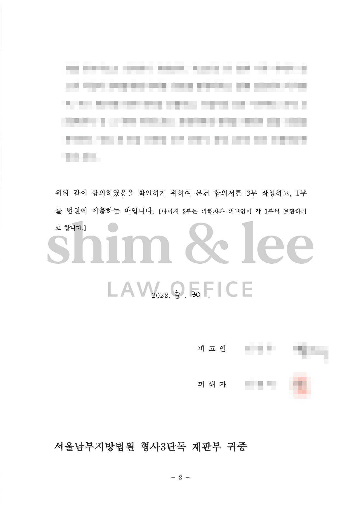 의뢰인은 가해자의 사과와 함께 최대한 많은 합의금을 받고, 특히 충분한 보호조치를 받을 수 있도록 안전한 합의를 위해 심앤이를 찾으셨습니다.