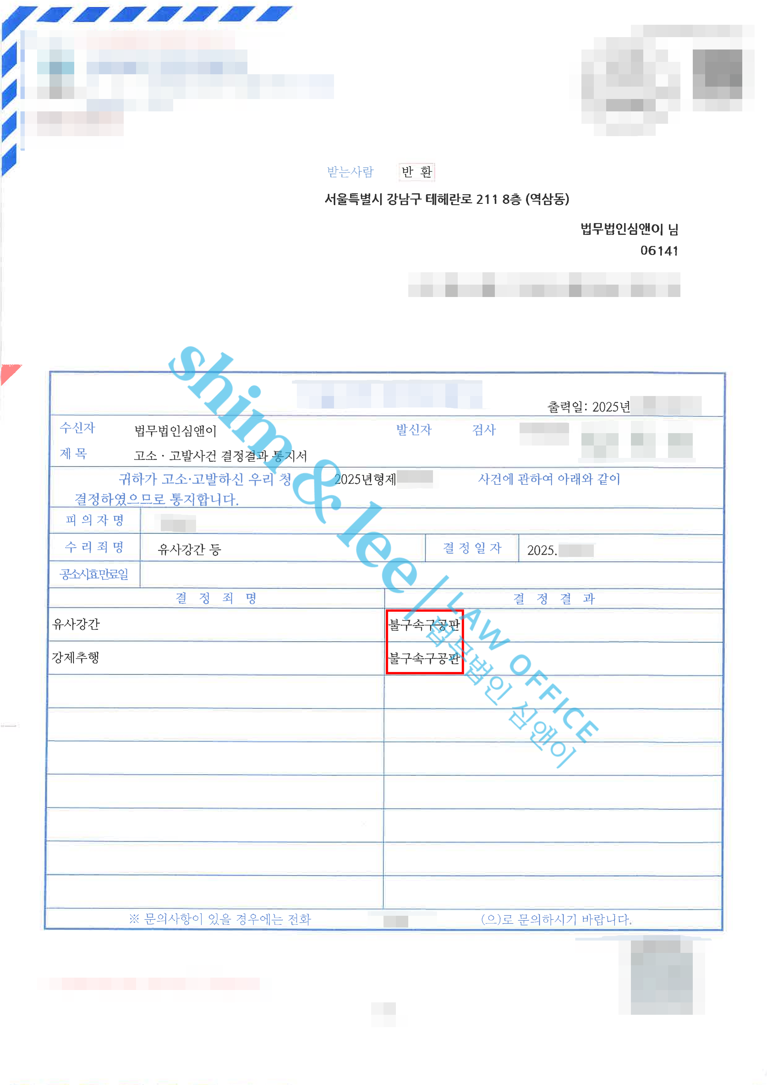 ※ 업로드된 내용 전문과 이미지 파일 등 일체의 콘텐츠는 법무법인 심앤이의 독자적인 표현물로써, 그 전체 또는 일부를 무단으로 복사 ·재배포하거나 자신의 이름으로 게시하는 일체의 행위를 금합니다.