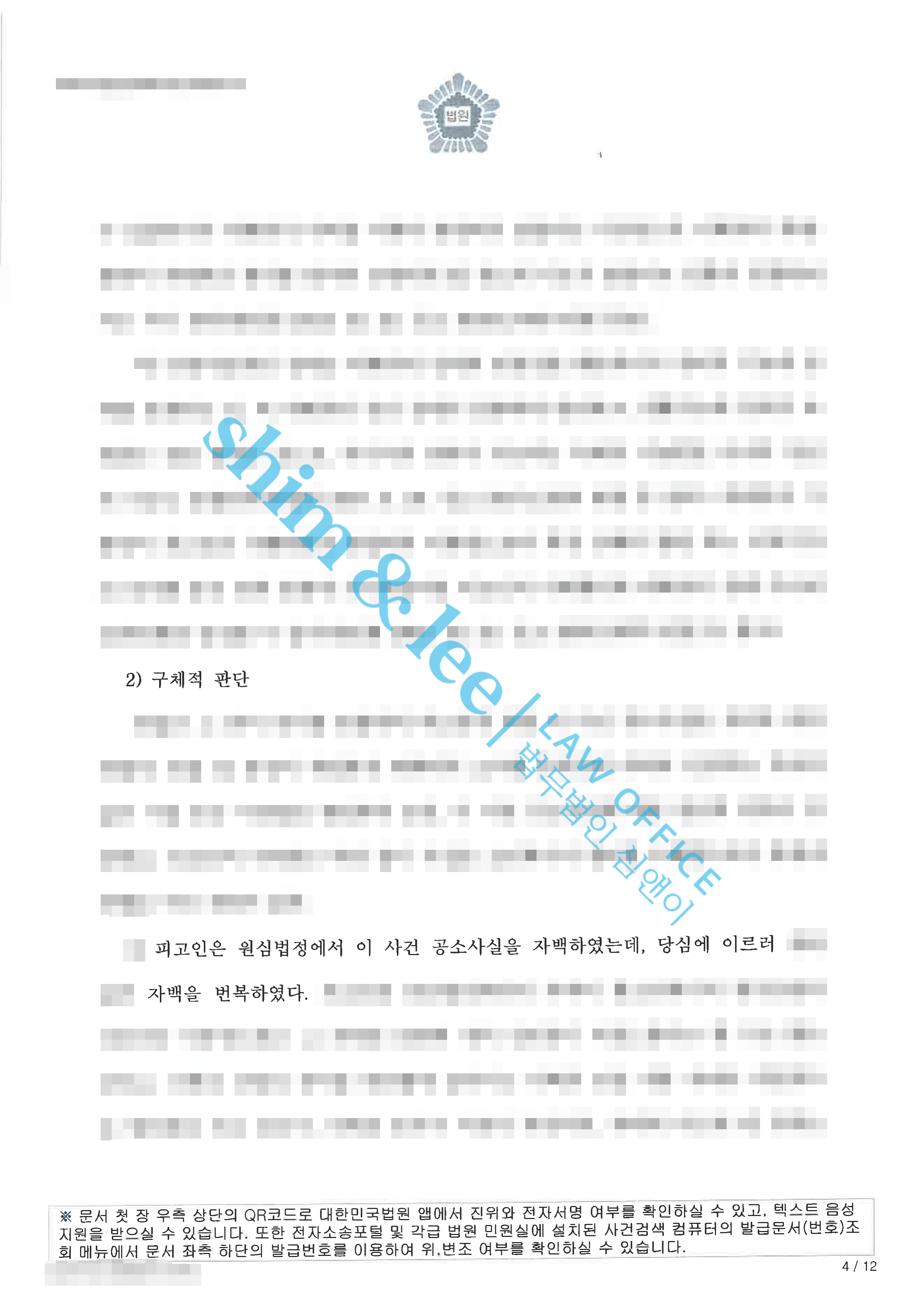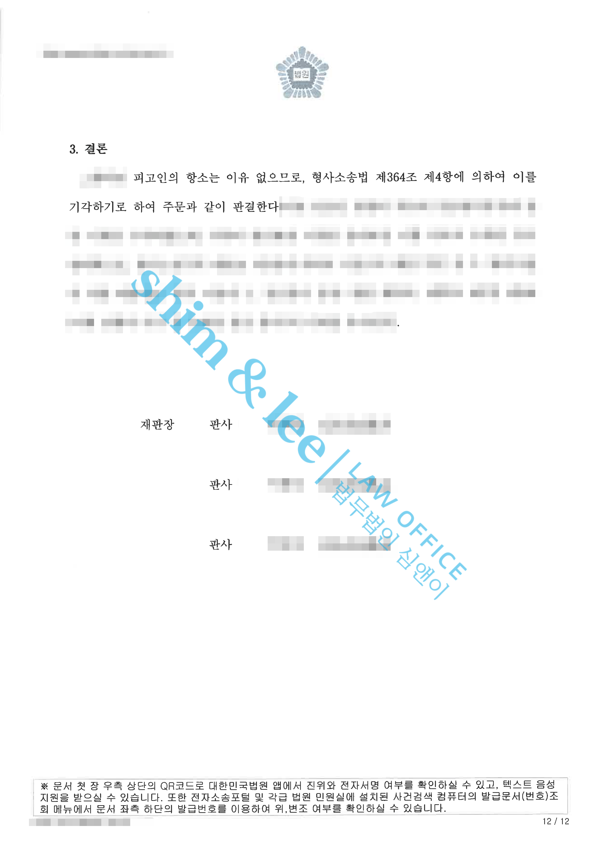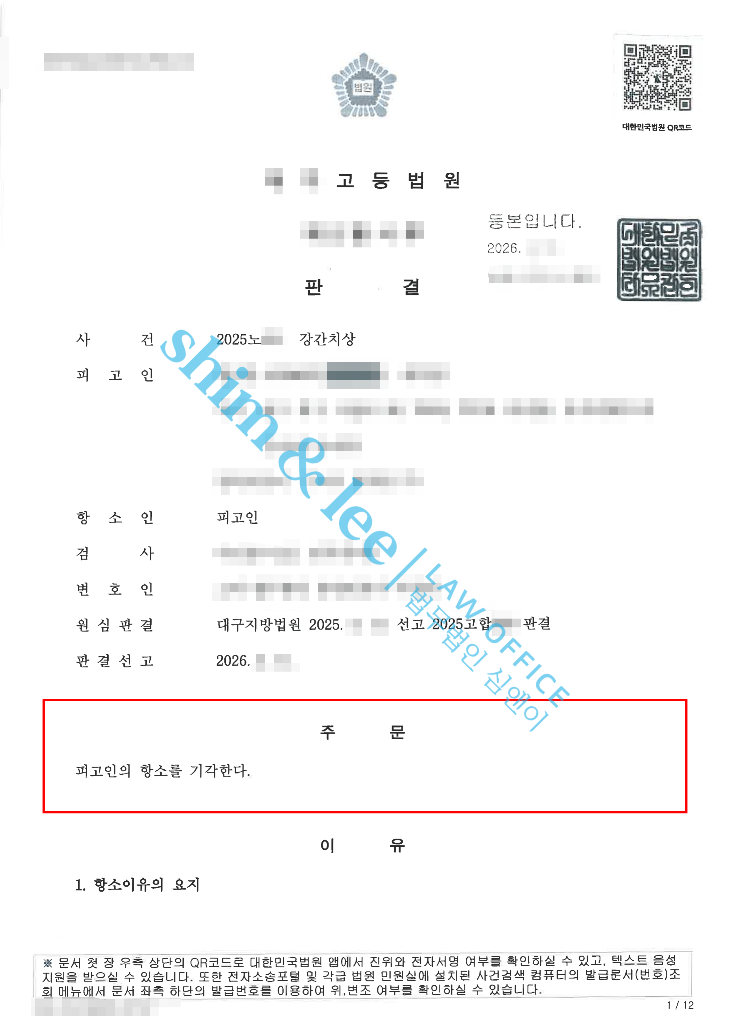 - 심앤이가 의견서를 통해 가해자의 주장에 대해 논리적으로 반박해 대응한 결과, 2심(항소심) 재판부는 피고인의 항소를 기각하고 1심 판결을 그대로 유지했습니다.