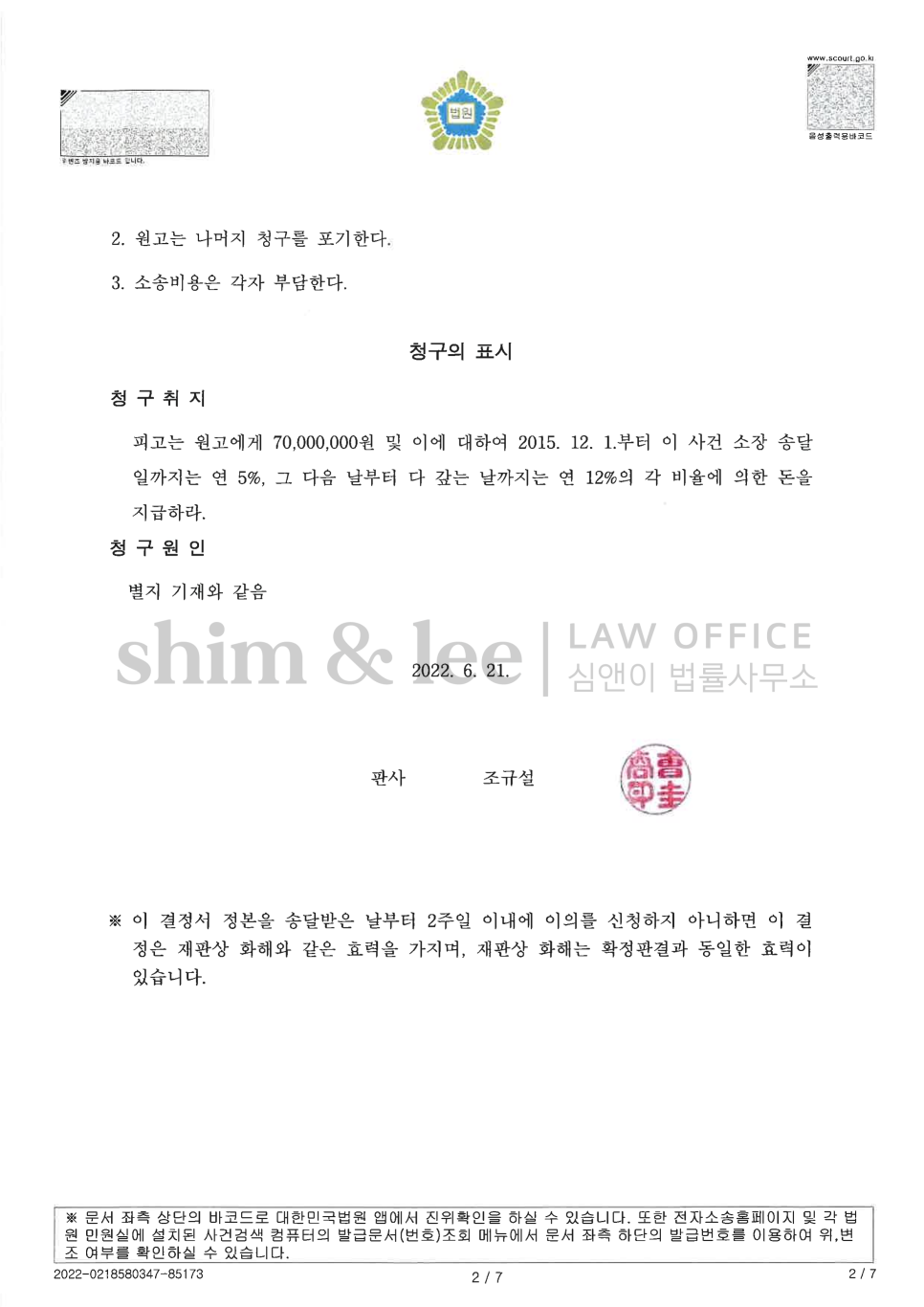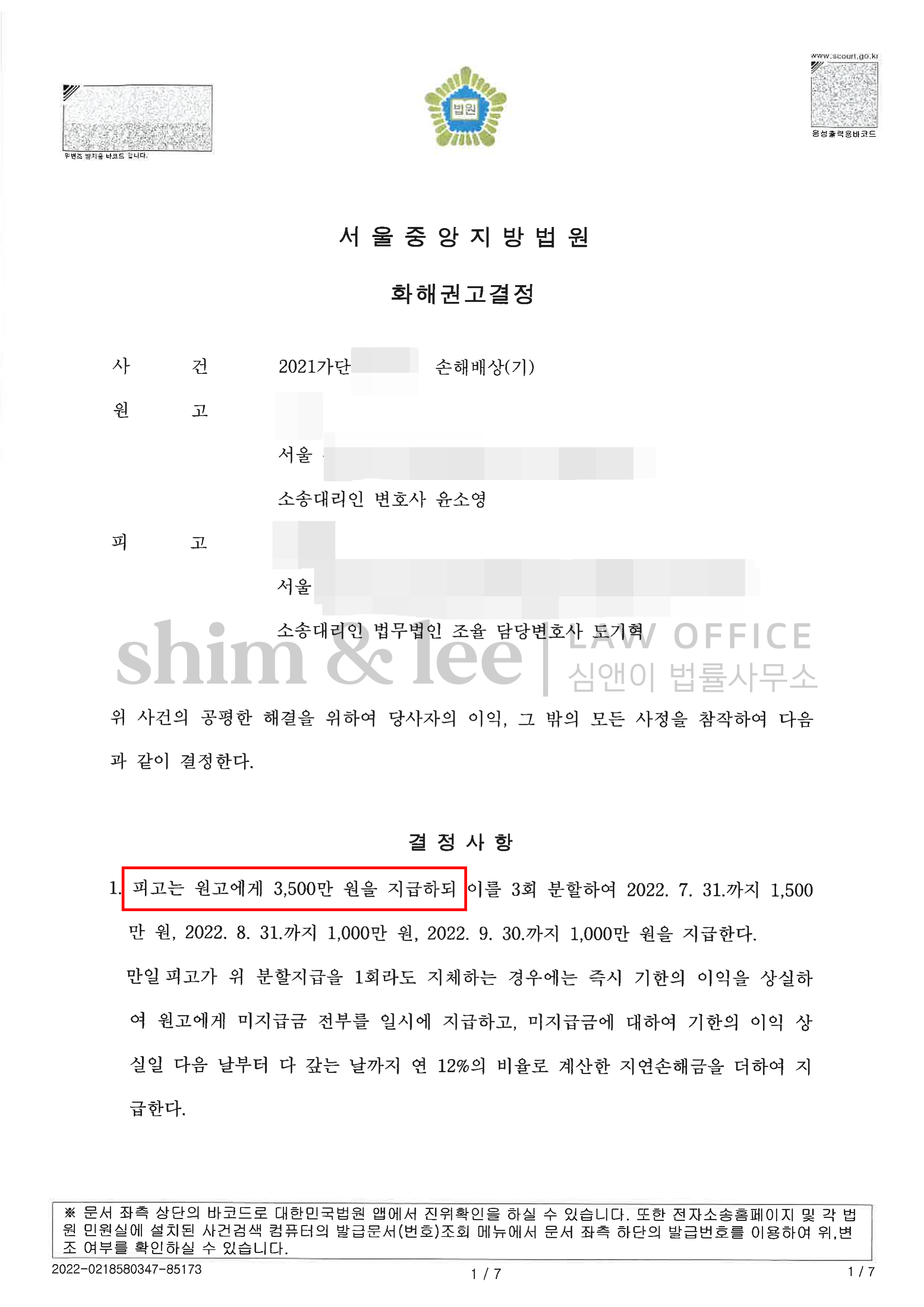 긴 싸움을 끝낸 의뢰인은 이제 마지막 피해보상을 받기 위해 심앤이에 오셨습니다. -