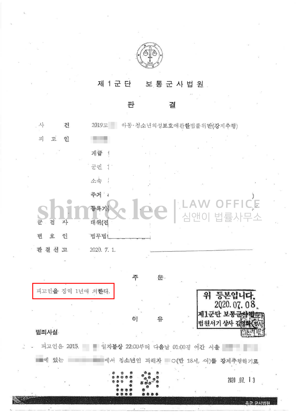 형사고소직장 상사인 가해자로부터 2년 동안 약 30차례 추행당한 사례 2021.11.30징역 1년 6월 / 집행유예 3년