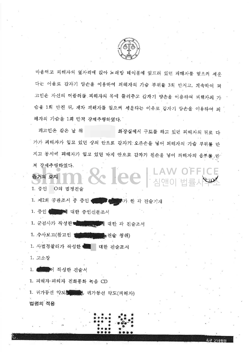 형사고소연인 간 강제추행 성립, 이별 후 전 남자친구의 보복 범행 사례 2021.10.21합의금 3,000만 원 -