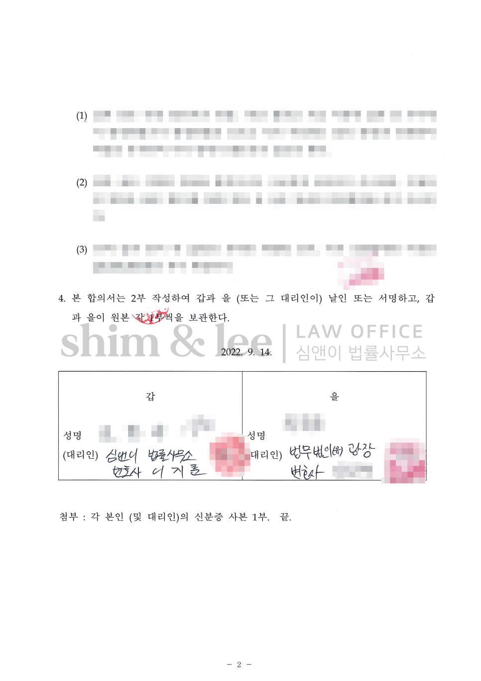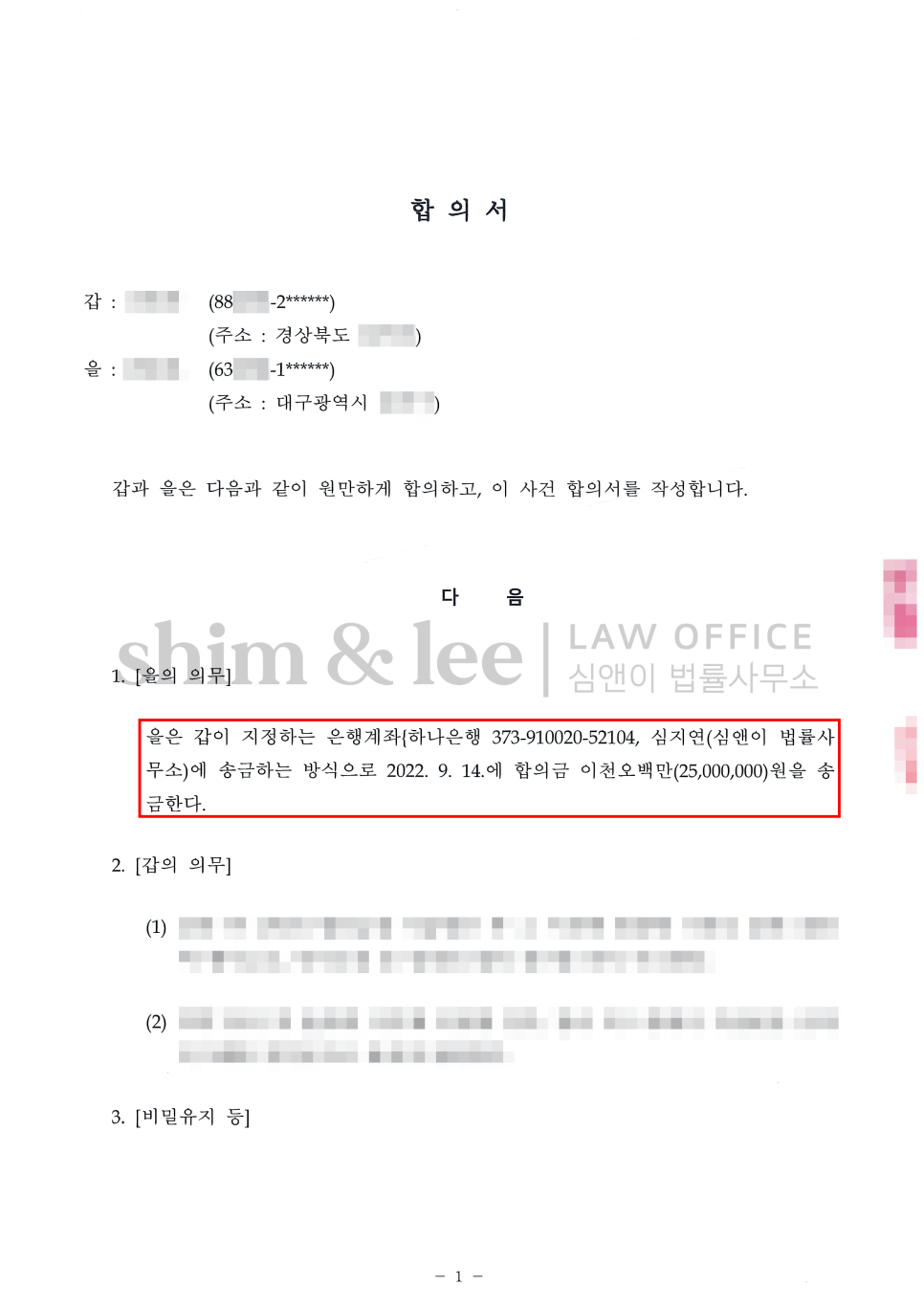 처음에 가해자는 1,000만 원 정도만 제시하면서 끝내려고 했지만, 가해자 변호사님과의 긴 협상 끝에 합의금을 2,500만 원까지 끌어올릴 수 있었습니다.