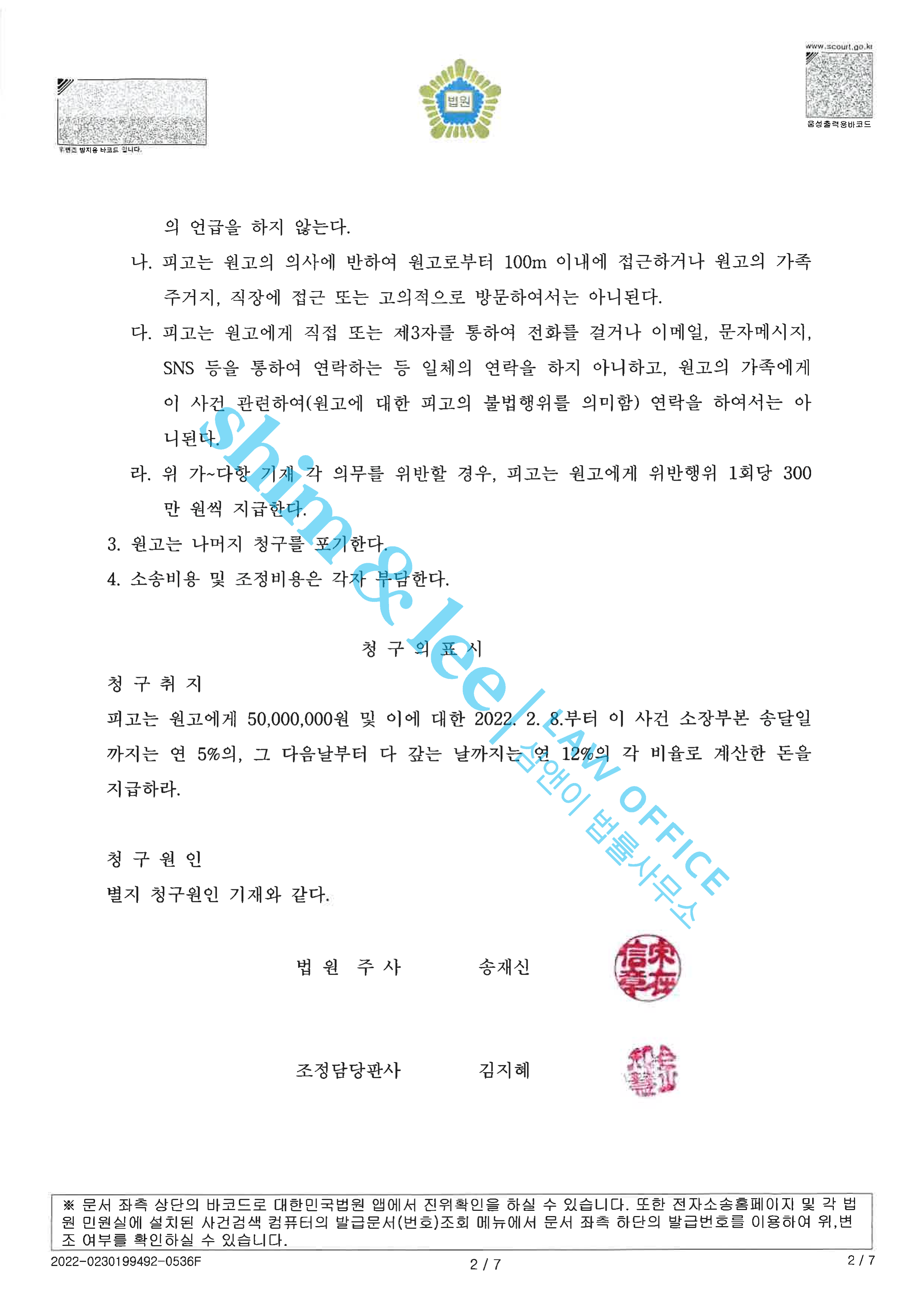 합의대행헤어진 전남자친구가 집과 직장으로 계속 찾아온 사례 2022.06.30합의금 720만 원 -