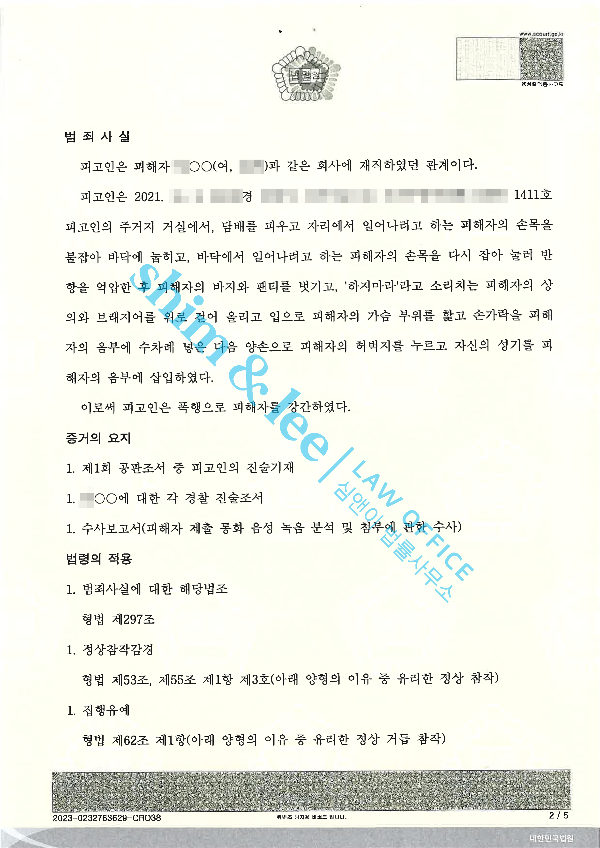 형사고소술자리에서 처음 본 남자에게 강제추행, 폭행 피해 당한 사건 2025.12.12불구속 구공판 -