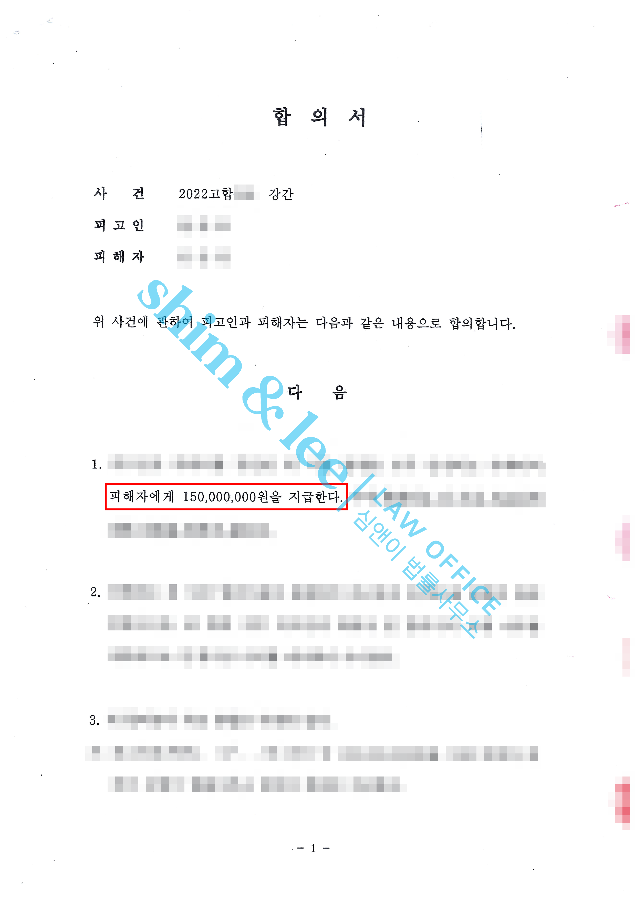 결국 가해자는 1억 5천만 원의 합의금을 마련해왔고, 피해자는 고민 끝에 가해자와의 합의를 진행했습니다. 가해자는 고액의 합의 이후에도 징역형의 집행유예를 선고받아 전과기록을 갖게 되었습니다.