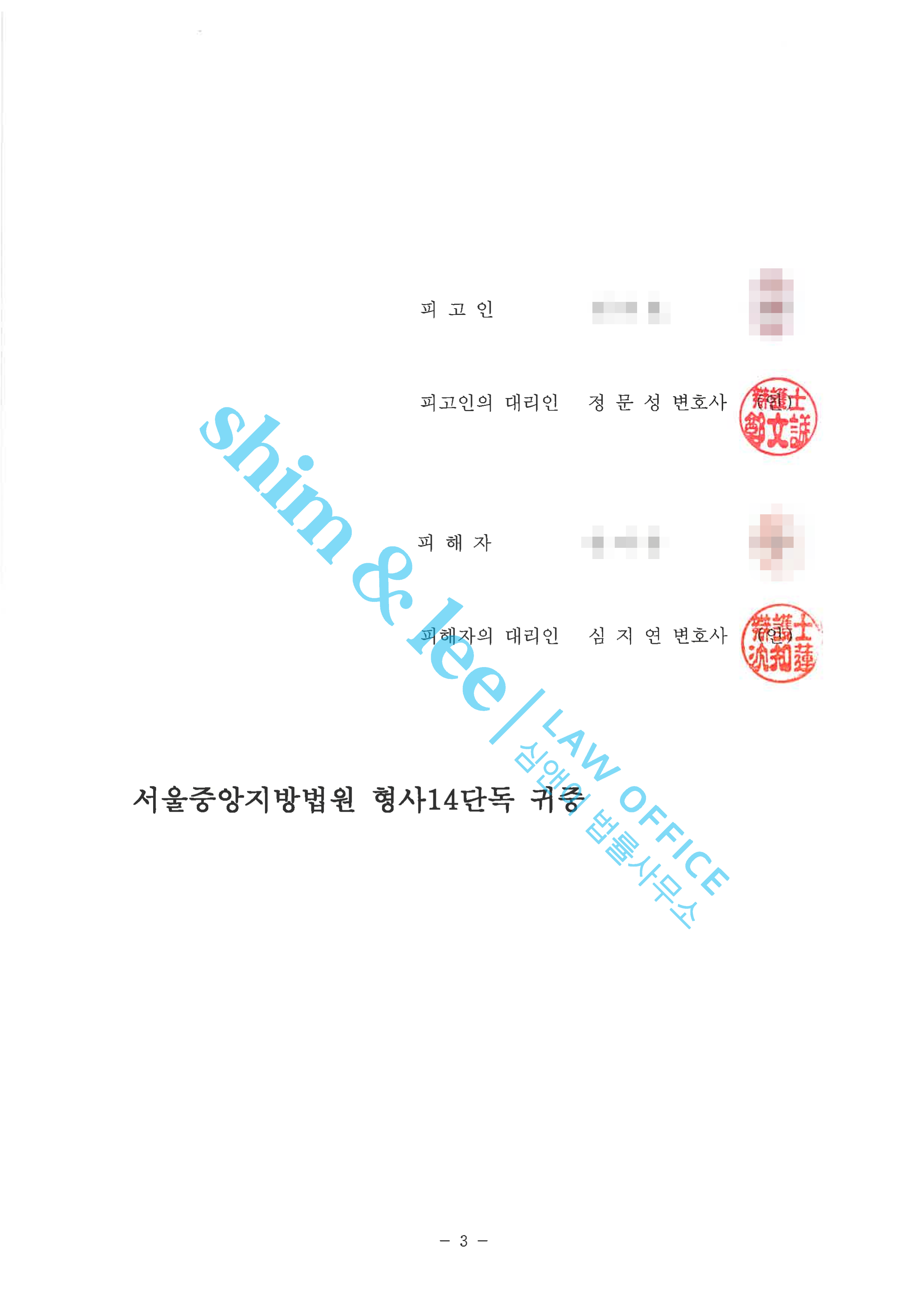 이에 심앤이는 피해자와 함께 합의를 결렬시키는 것까지 각오하고 엄벌탄원서를 제출하면서 최대한 강경한 대응을 하여 가해자의 마음을 조급하게 만들었고, 겁을 먹은 가해자는 조금씩 합의금을 높여 왔습니다.