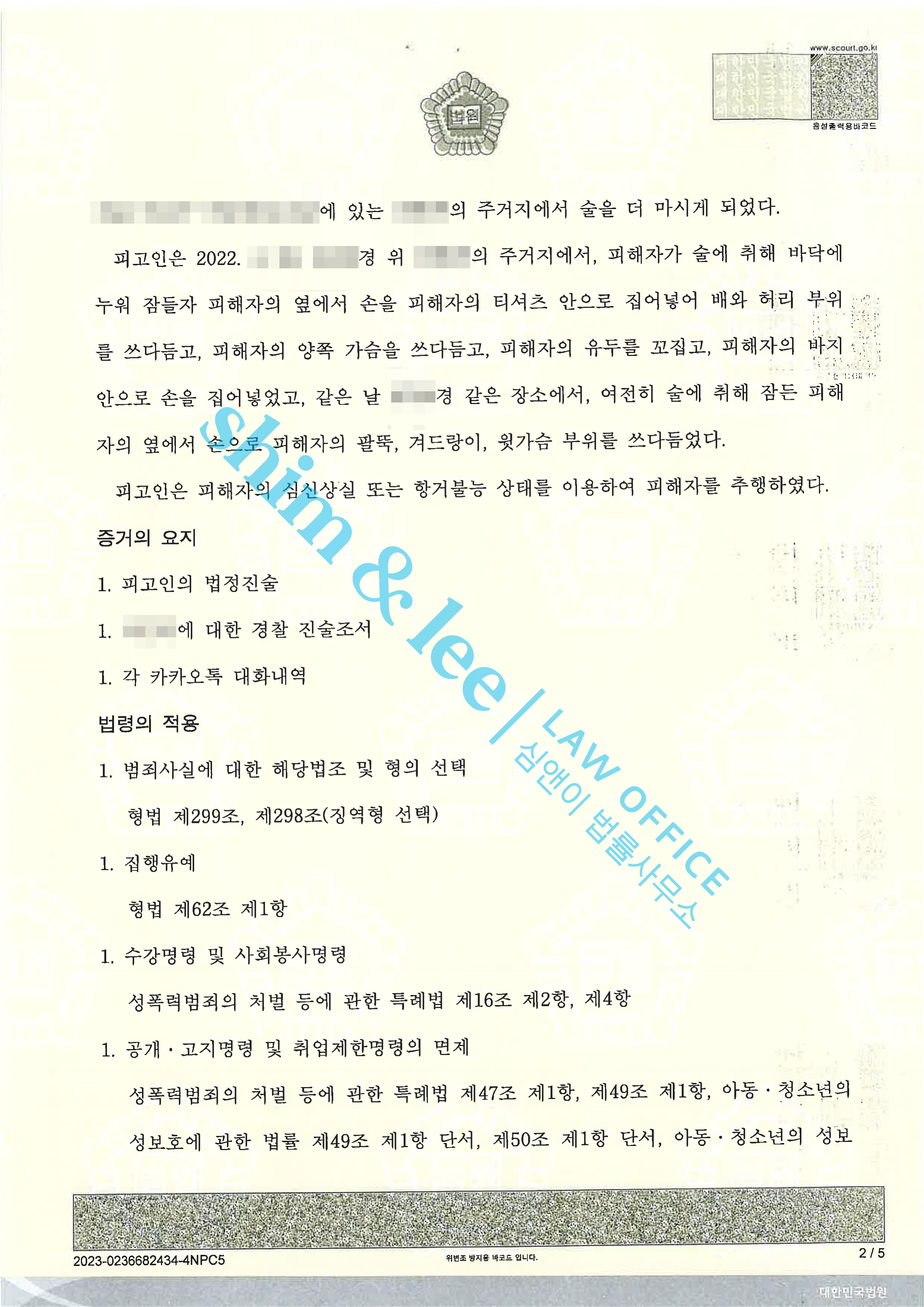 형사고소술자리에서 처음 본 남자에게 강제추행, 폭행 피해 당한 사건 2025.12.12불구속 구공판 -