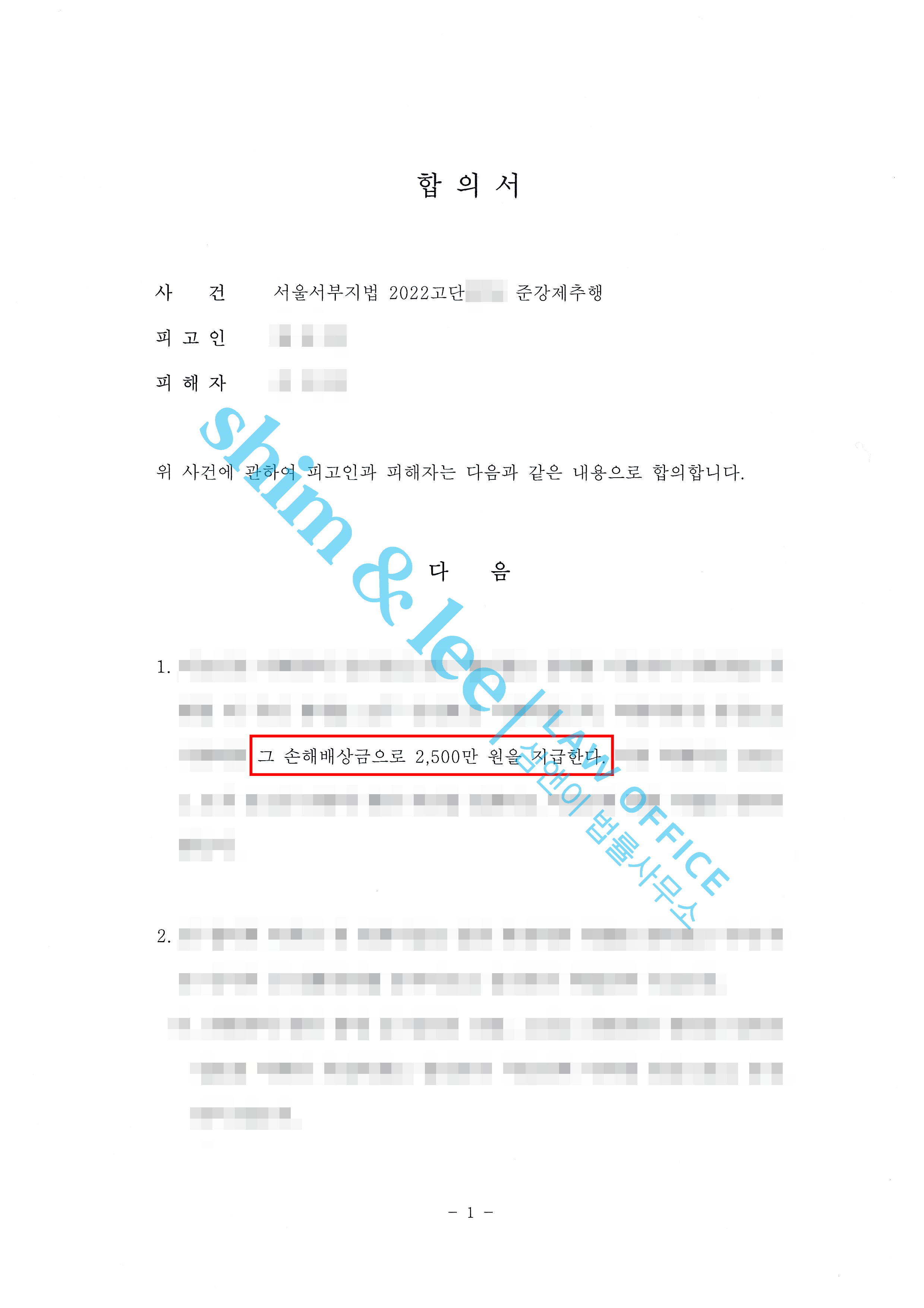 결과적으로 가해자가 처음 제시했던 금액의 두 배가 넘는 2,500만 원에 합의를 진행했습니다.