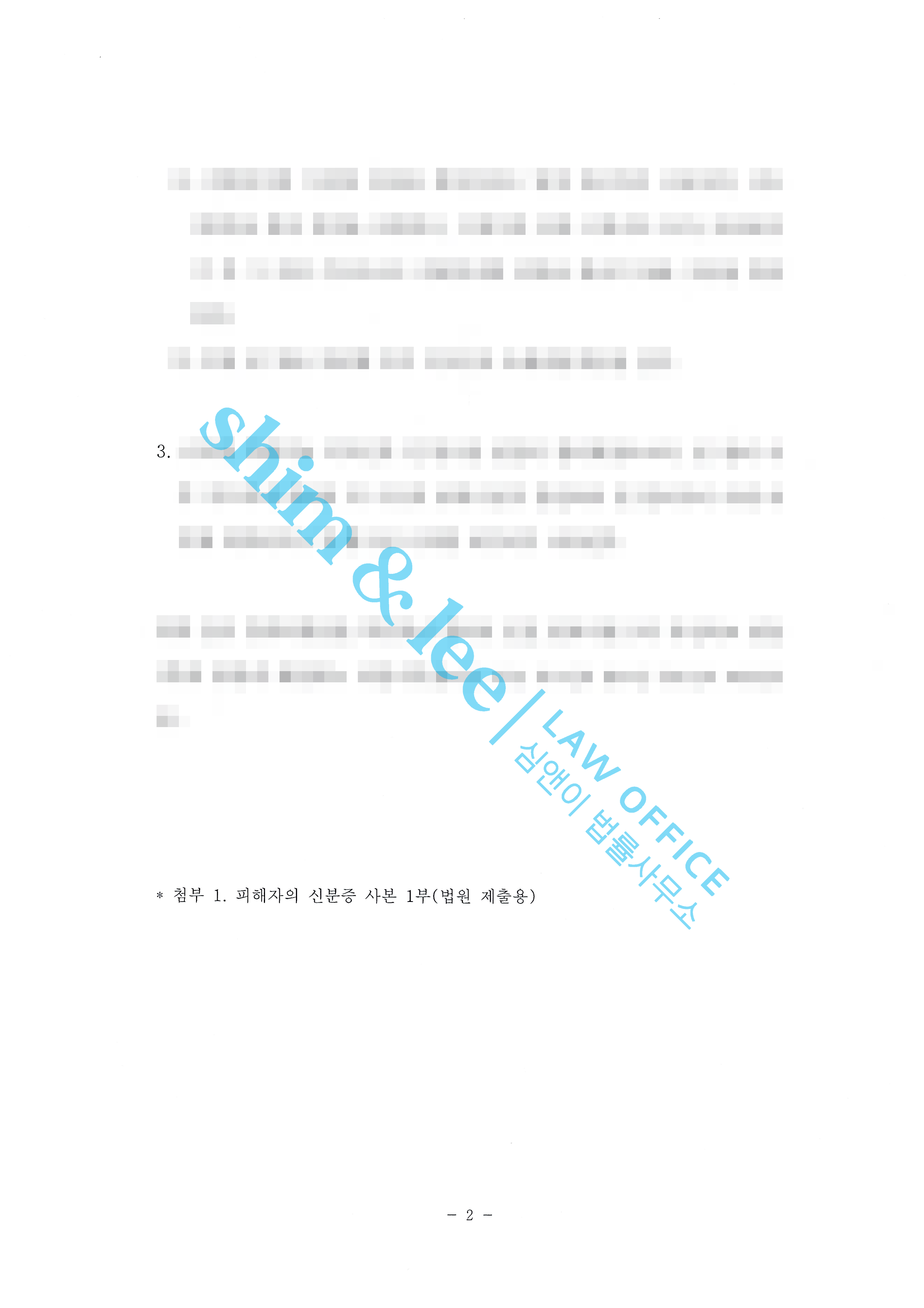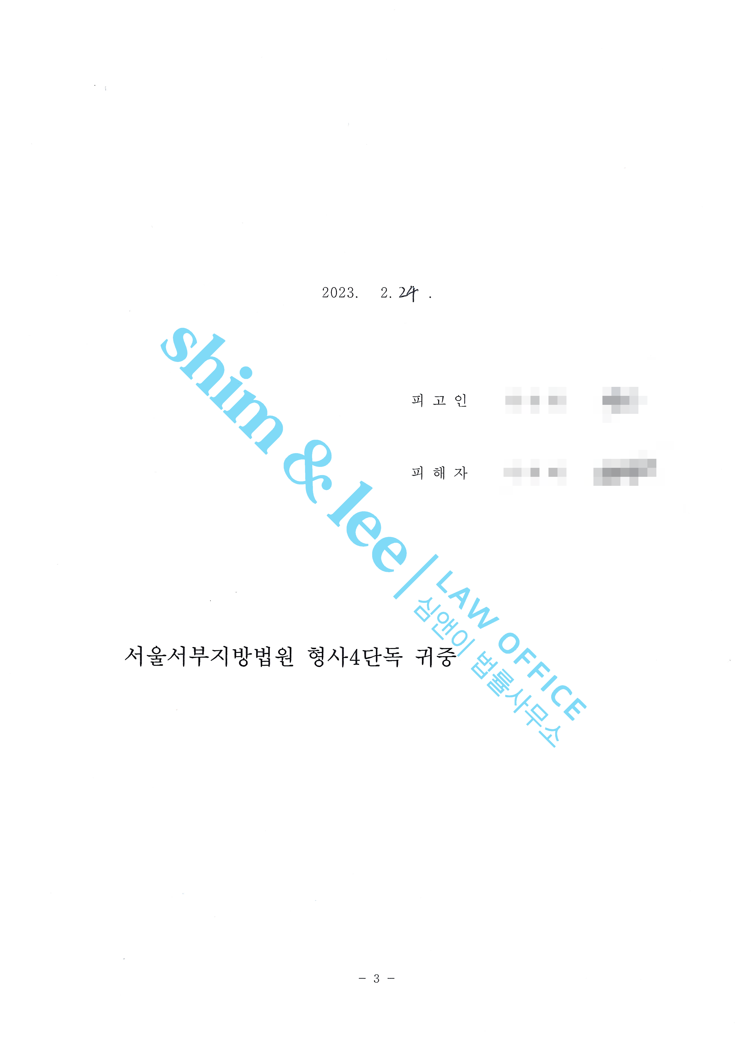 가해자는 재판에 이르러서야 범행을 인정한다며 변호사를 통해 합의를 요청해왔습니다. 하지만 실질적으로 범행 자백보다는 감형을 위한 소송전략에 가까웠고, 제안액도 1,000만 원에 불과해 피해자가 그동안 받았던 정신적 고통에 비해 턱없이 낮은 수준이었습니다.