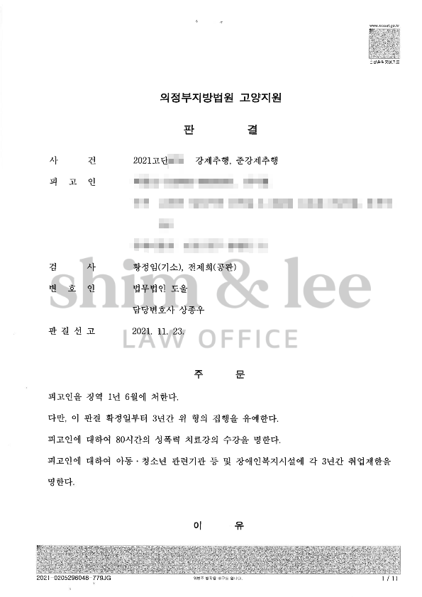 너무 오랜 기간 동안 많은 횟수의 유사한 추행이 반복되었기 때문에 의뢰인이 모든 사건을 자세히는 기억하지 못한다는 점이 어려웠던 사건이었습니다. -