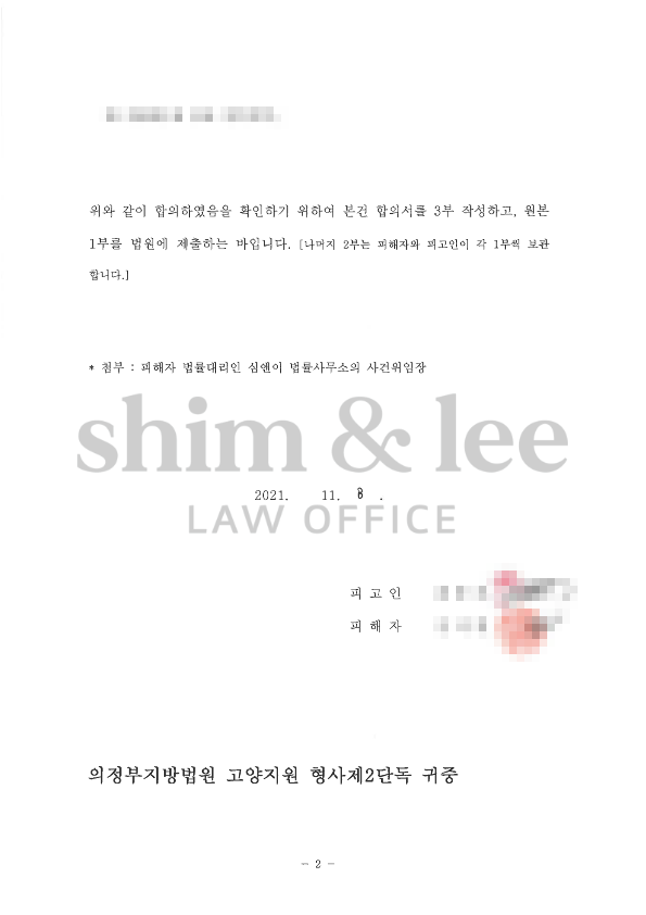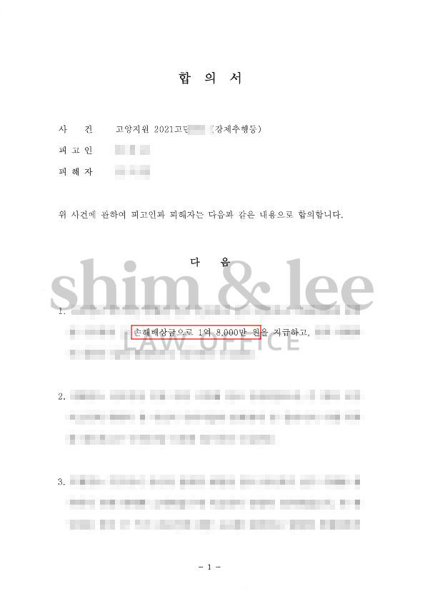 결국 가해자가 합의를 요청해왔으며, 1억 8천만 원이라는 기록적인 금액의 합의금을 이끌어낼 수 있었습니다.