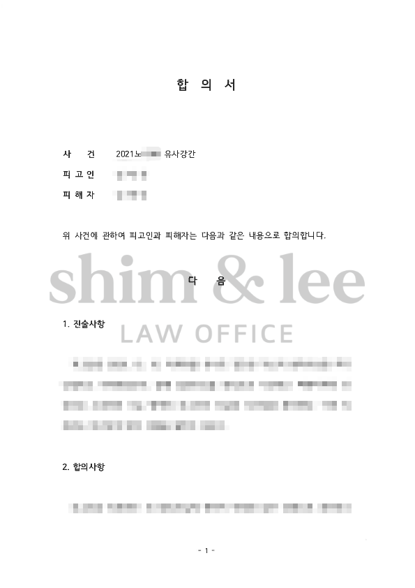 1개월 정도 시간이 걸리기는 했지만 가해자측에서 피해자의 의사가 완강하다는 것을 알고 수긍할 수밖에 없었고, 결국 처음에 목표했던 금액으로 합의를 진행할 수 있었습니다.