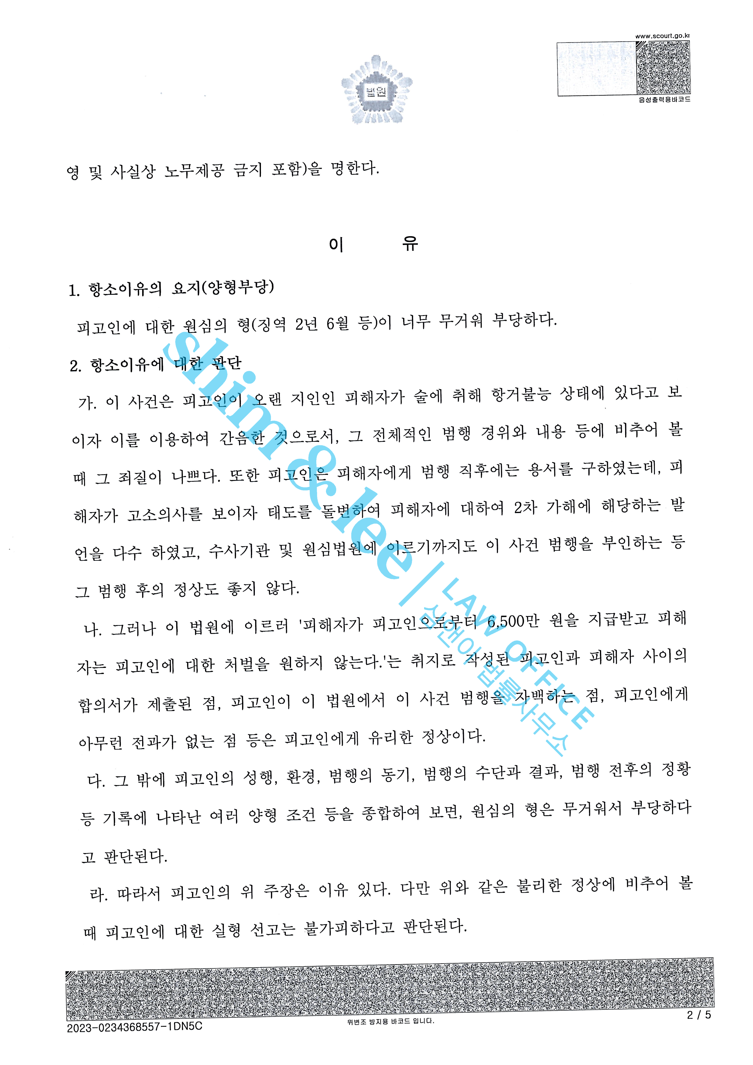 6,500만 원에 합의를 진행했음에도, 2심 재판부는 가해자가 계속해서 범행을 부인해 피해자의 고통을 가중시킨 점이 나쁘다며 집행유예가 아닌 실형을 유지하는 판결을 내려주었습니다.