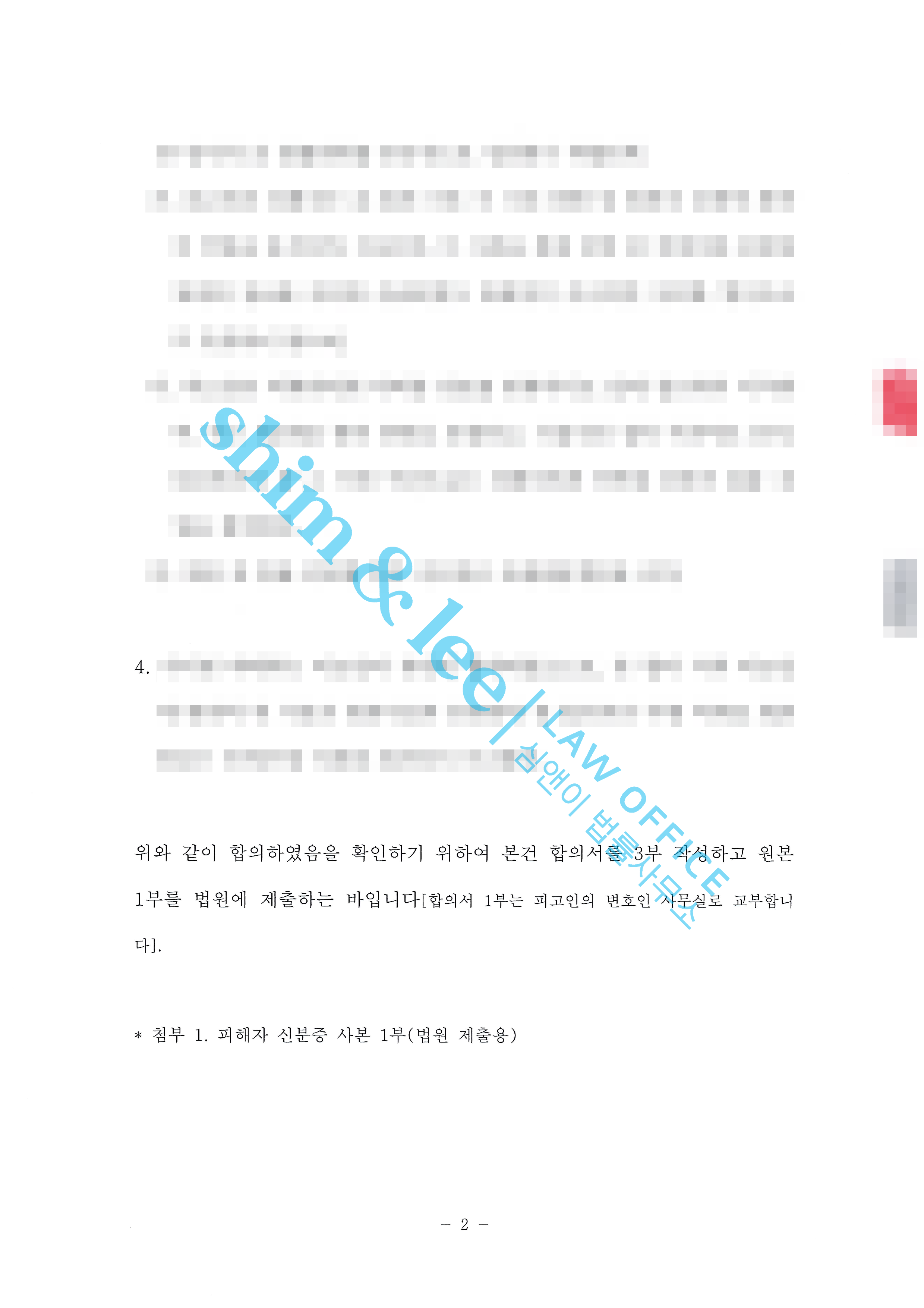 심앤이는 1심 판결 이후 민사소송까지 진행해 가해자측을 더욱 압박했고 몇 달 간의 협상 끝에 결국 민사 소가보다 더 높은 금액으로 합의를 진행했습니다.