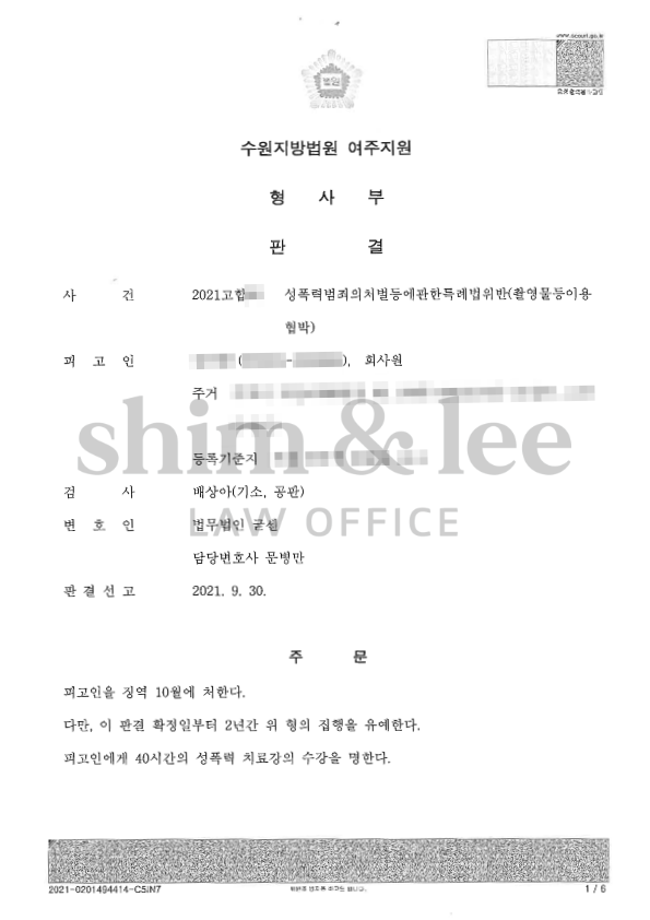 형사고소성관계 중 몰카 피해, 집행유예 3년 선고 받아낸 사건 2025.11.07징역 1년 / 집행유예 3년