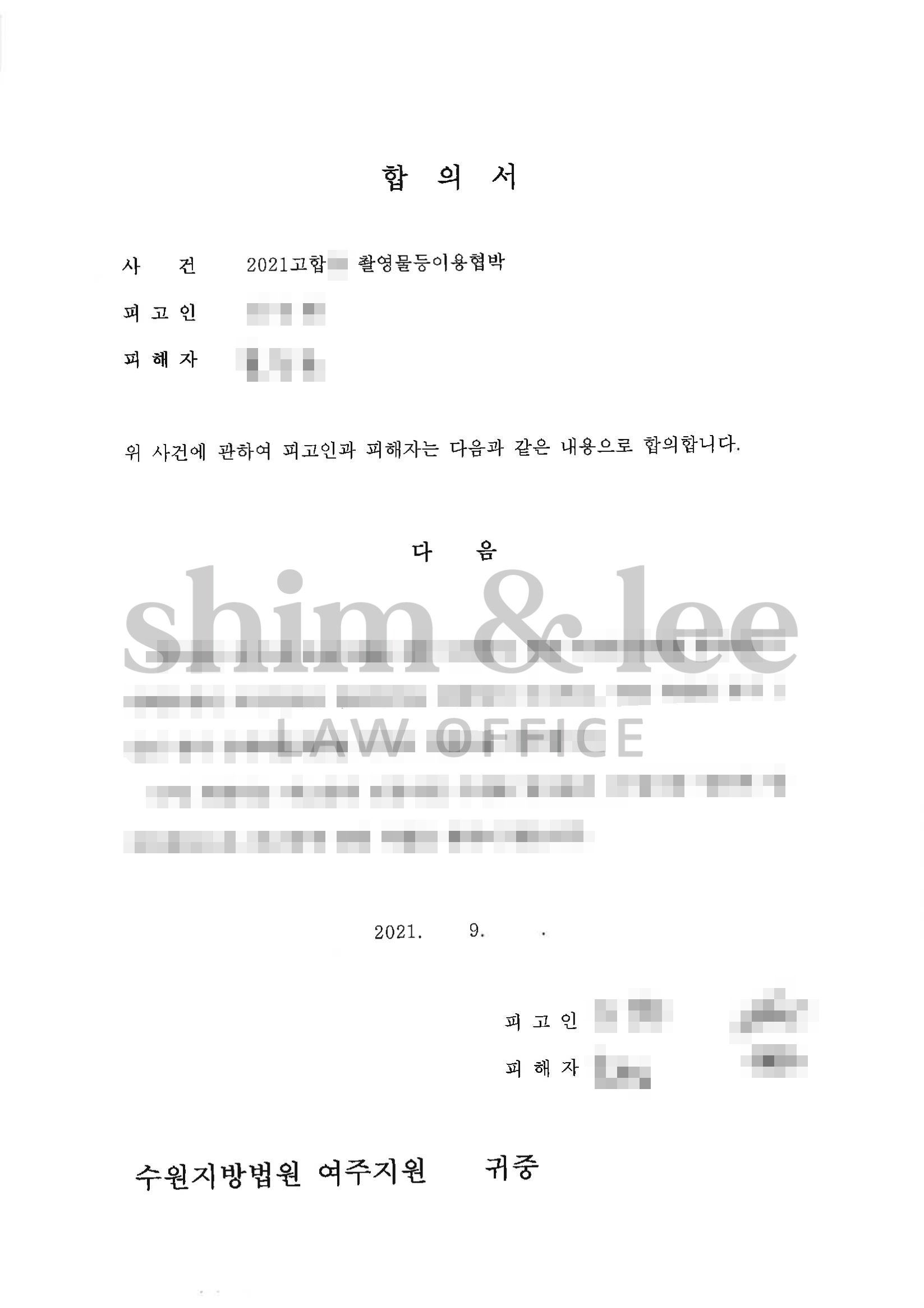의뢰인 또한 전 남자친구인 가해자에 대한 걱정 때문에 적정한 수준에서 합의가 마무리되기를 원했고, 여기에 맞춰 합의금을 결정하고 최대한 원만한 방향으로 사건이 마무리되도록 했습니다. -