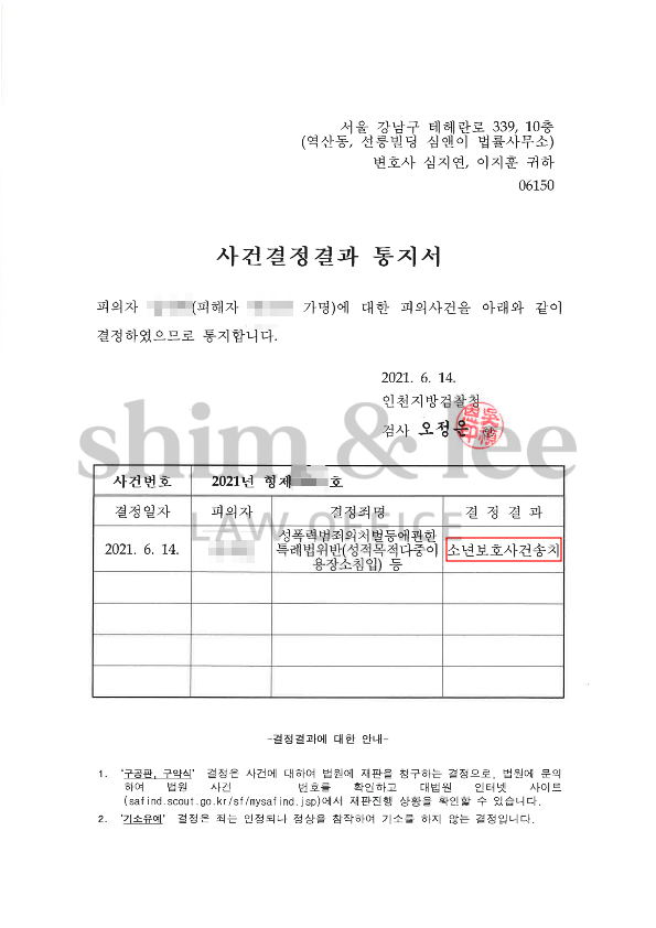 다행히 디지털포렌식에서도 촬영물이 발견되지 않아 가해자가 처음부터 촬영에 실패한 상황이었으며, 다른 업로드 및 전송내역도 확인되지 않았기 때문에 추가적인 피해가 없다는 점도 분명하게 확인할 수 있었습니다. -
