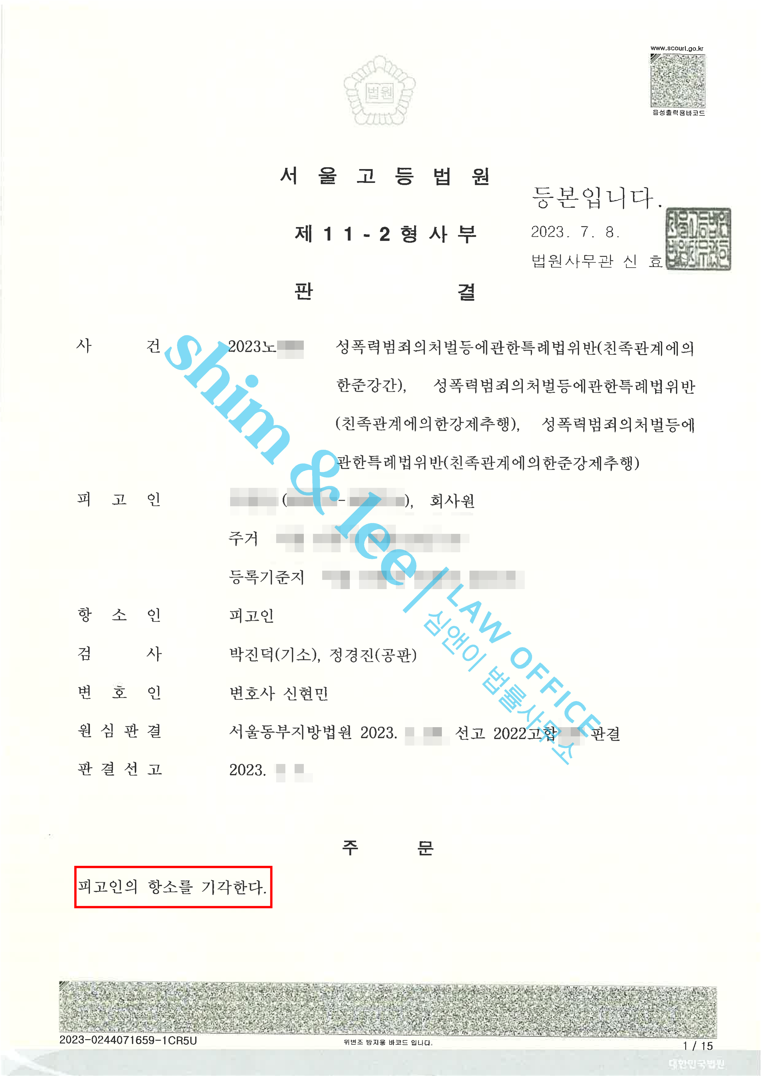 형사고소마사지샵에서 강제추행 당한 사건 2025.10.17항소 기각
