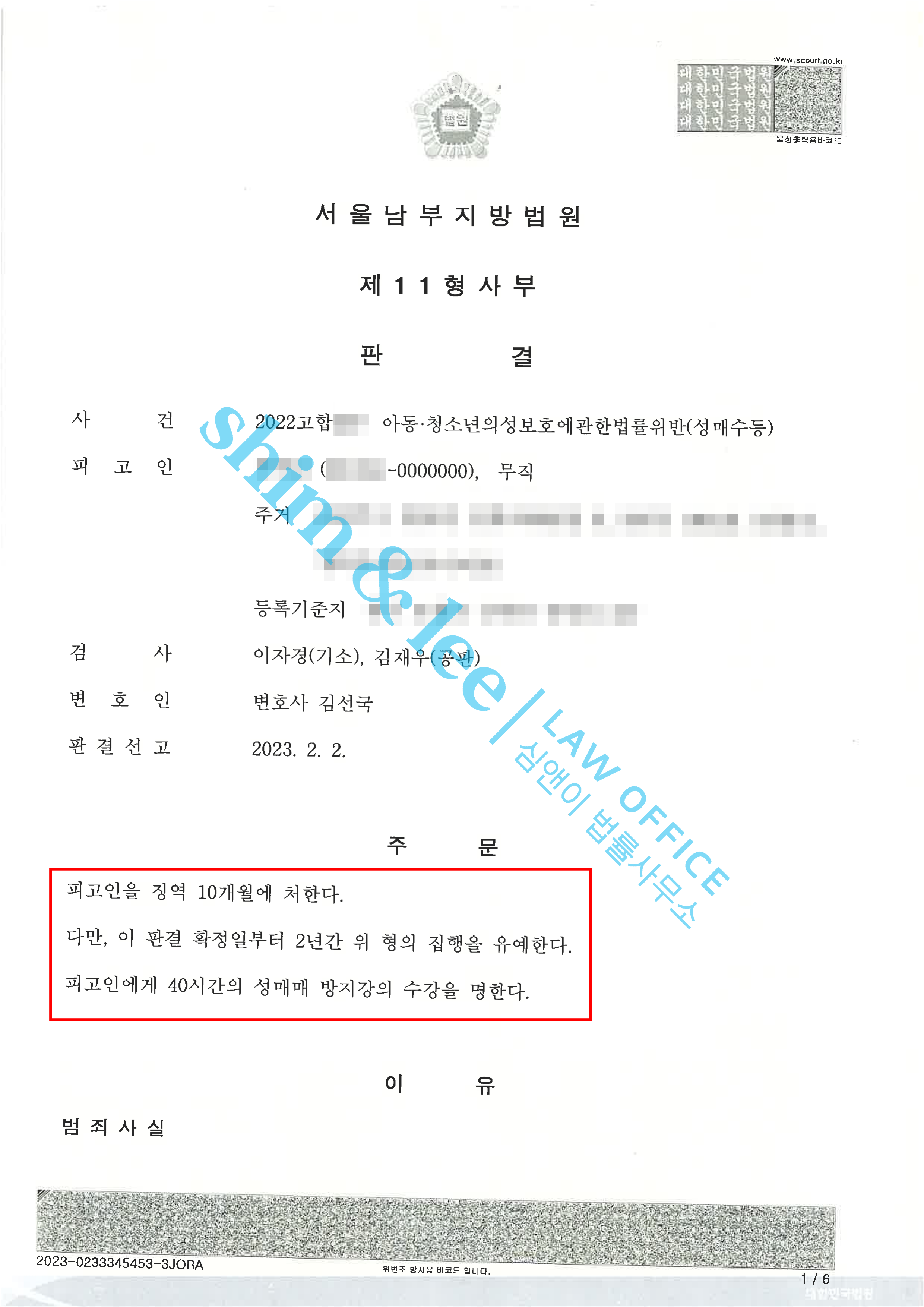 취업제한 3년 / 성폭력 치료강의 40시간 -