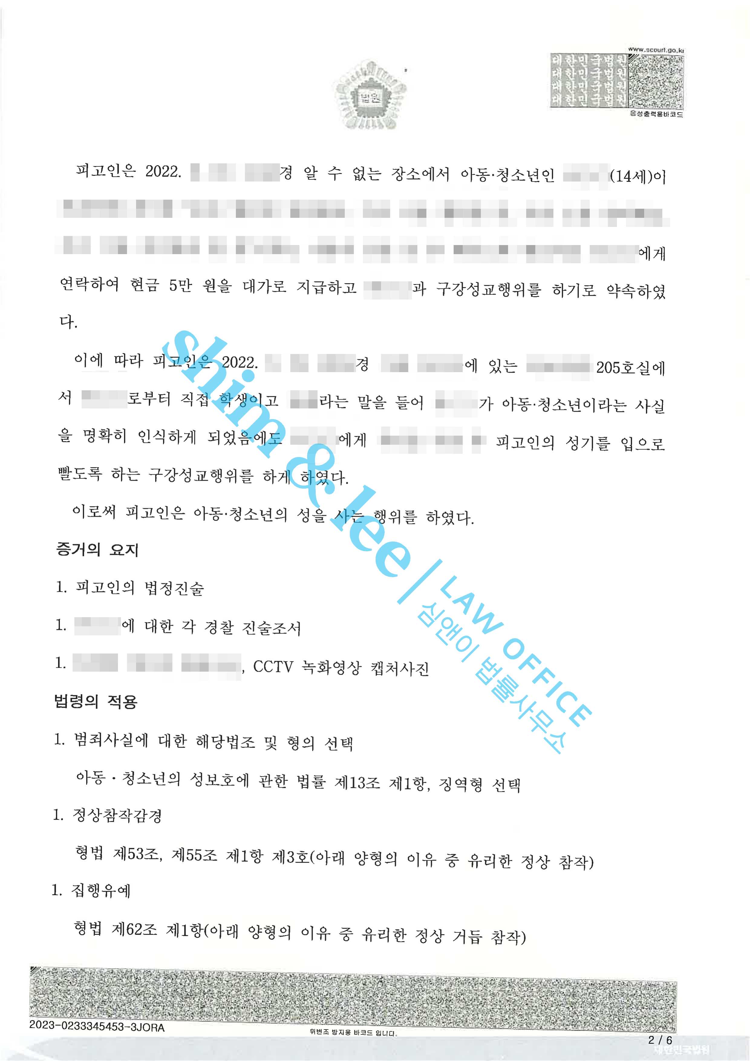 - 가해자는 아직 판단력이 흐린 피해자를 모텔로 유인해 유사 성행위를 요구하고 그 대가로 5만 원을 지급함