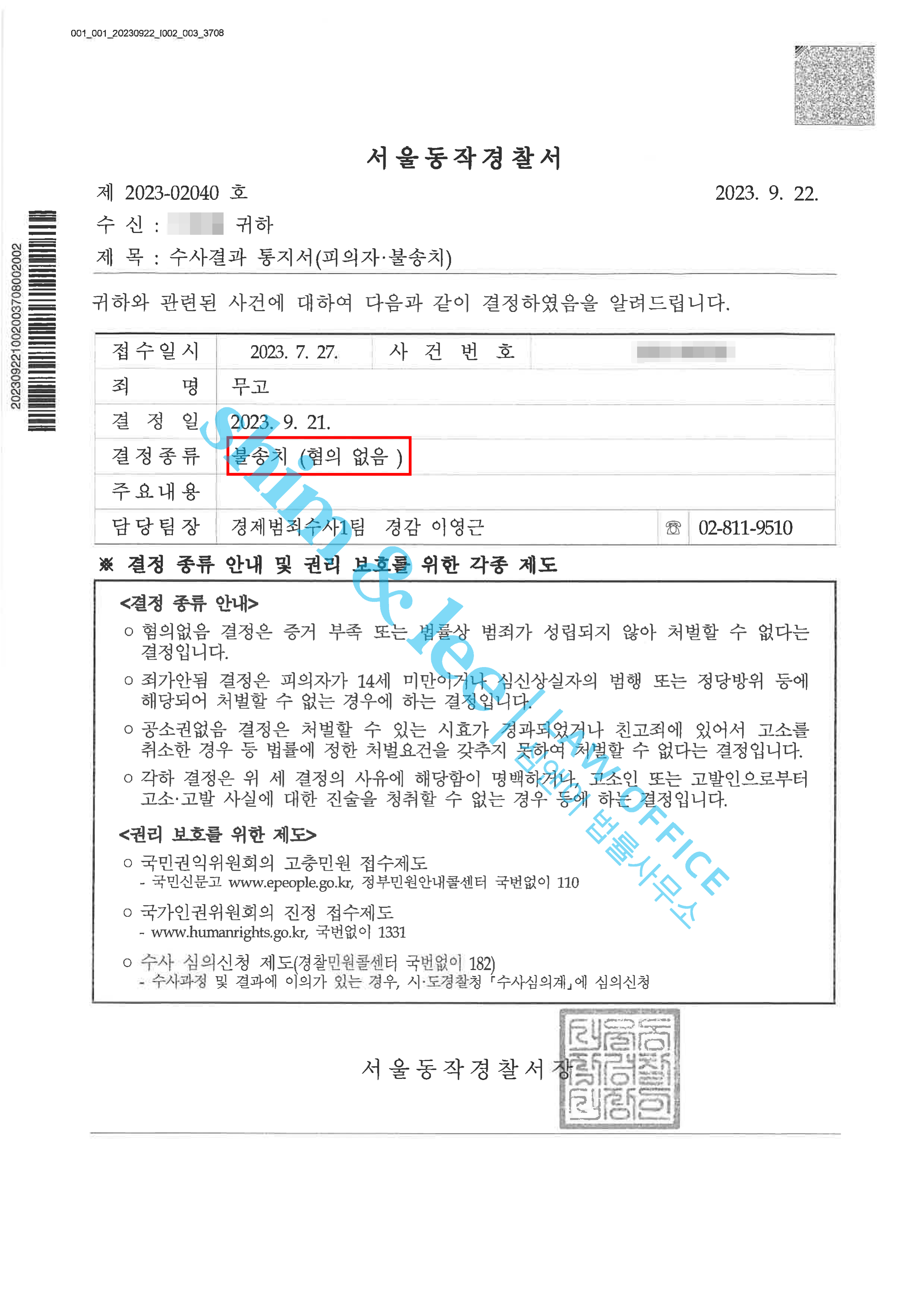 - 담당 수사관님 설득하여 조기에 불송치 결정 내려지도록 유도 -