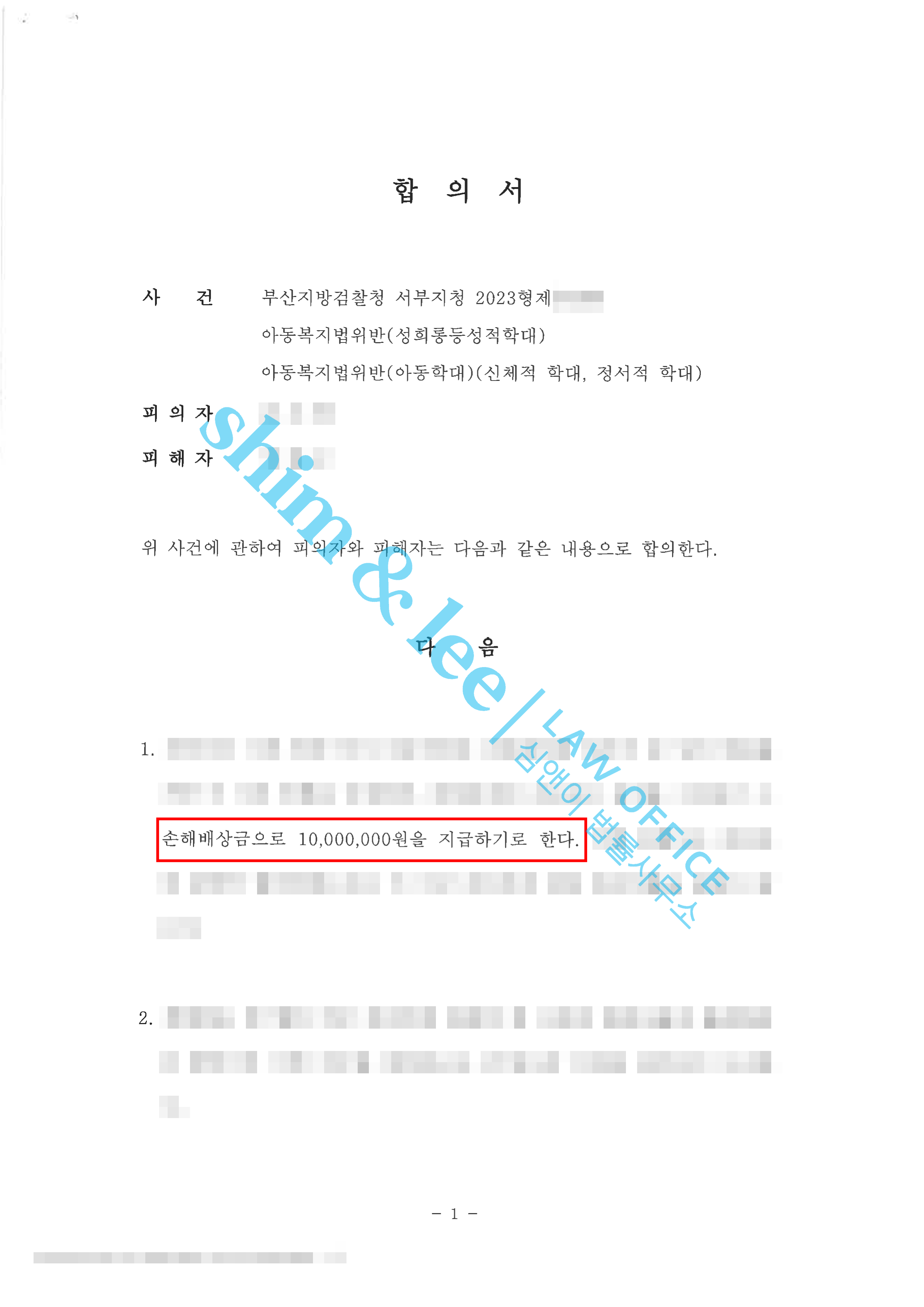 - 심앤이는 아동 관련 범죄이고 기소 후에 민사소송으로도 1천만 원 이상 소송 진행 가능한 사건임을 자세히 설명하며 피해자가 수용할 수 있을 만큼의 금액 마련해오도록 유도 -