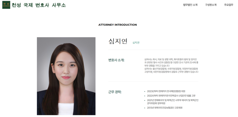 안녕하세요 법무법인 심앤이입니다. 최근 보이스피싱 단체가 심지연 대표 변호사의 명의를 사칭하고, 심지연 변호사의 프로필 사진을 무단으로 도용해 법률사무소 사이트를 운영하며 범죄에 악용하고 있다는 제보를 받았습니다. * 심지연 변호사님은 현재 법무법인 심앤이의 대표 변호사로만 활동하고 있으며, 그 외의 어떤 기관이나 단체와도 관련이 없음을 명확히 알려드립니다. 심지연 변호사의 이름, 사진, 또는 기타 정보를 활용하는 외부 사이트나 단체는 즉시 의심하시고, 관련 기관에 신고하여 추가 피해를 예방해주시길 바랍니다. 이러한 사칭 행위로 인해 피해를 입지 않으시도록 각별히 주의 부탁드리며, 추가 제보 사항이 있으신 경우 아래 메일로 제보하여 주시면 감사하겠습니다. hello@shimlee.co.kr 감사합니다. 법무법인 심앤이 드림